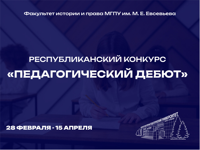 Факультет истории и права Мордовского государственного педагогического университета имени М. Е. Евсевьева приглашает обучающиеся образовательных организаций общего, среднего профессионального и высшего образования Республики Мордовия принять участие в республиканском конкурсе «Педагогический дебют», который будет проходить с 28 февраля по 15 апреля 2026 года. Конкурс направлен на раскрытие творческого потенциала обучающихся; создание...