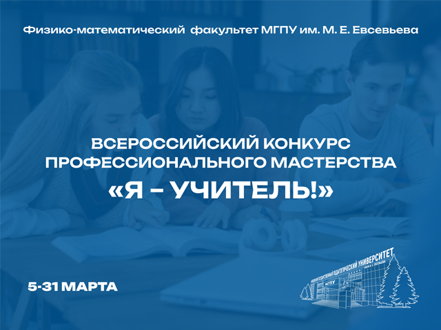 Физико-математический факультет Мордовского государственного педагогического университета имени М.Е. Евсевьева приглашает молодых учителей, студентов педагогических вузов и обучающихся профильных психолого-педагогических классов принять участие во Всероссийском конкурсе профессионального мастерства «Я – учитель!», который пройдет 05 - 31 марта 2026 года. Цель конкурса – самореализация молодых педагогов и студентов педагогического ву...